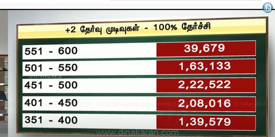 2 பொதுத்தேர்வில் தேர்ச்சி பெற்ற மாணவர்கள் எண்ணிக்கை : 3,80,500+2 பொதுத்தேர்வில் தேர்ச்சி பெற்ற மாணவியர் எண்ணிக்கை : 4,35,973